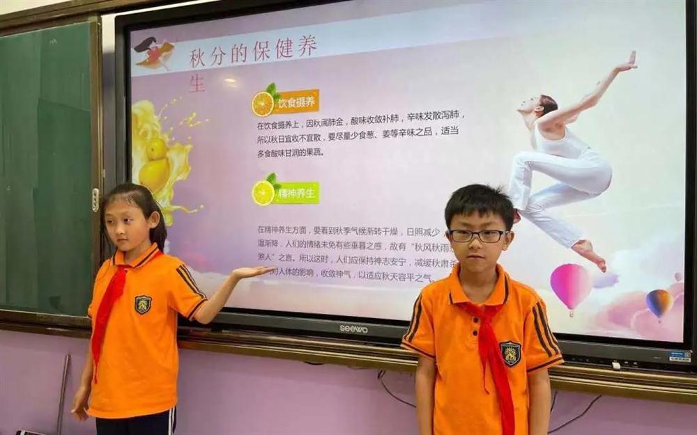 秋分标志着我国绝大部分地区正式进入凉爽的秋季,昼短夜长、凉意日浓,再加上一次次的降雨,气温也随之下降,正所谓“一场秋雨一场寒”。在今天的综合实践课堂中,老师们带领同学们学习、探究节气的成因、习俗等,让节气知识走进课堂,走进同学们的生活。