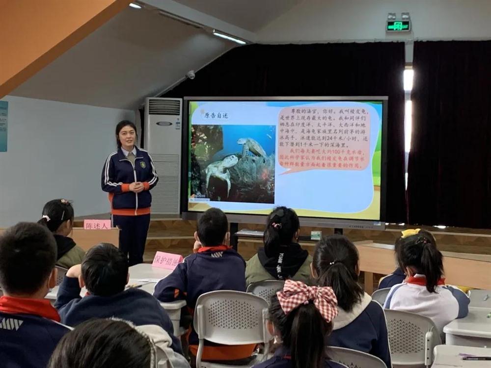 同学们身临其境,来到保护动物的“模拟法庭”。法庭上,棱皮龟作为原告,介绍了自己濒临灭绝的不幸处境,对人类的破坏行为进行控诉。激烈的辩论环节引发了同学们关于保护棱皮龟的措施大讨论。