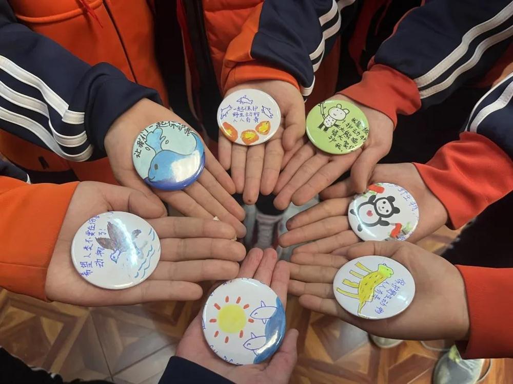 已灭绝的动物也曾是地球上的重要成员,为地球增添了美的记忆。大家感悟环保的重要性,纷纷拿起画笔,自制个性化动物徽章,做好宣传小使者,倡导人与动物和谐共处。