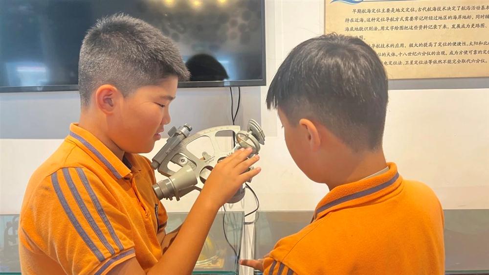 针路航海博物馆是青岛市首家以航海为主题的博物馆,馆内陈列了超过400件航海展品。同学们初次到访,在专家的带领下参观了场馆内的航海模型陈列,近距离地接触了馆内珍藏的历史文化遗迹,与源远流长的航海文化同频呼吸。随后通过观看针路航海博物馆的宣传影片,队员们了解了近代以来我国海权思想的发展演变。
