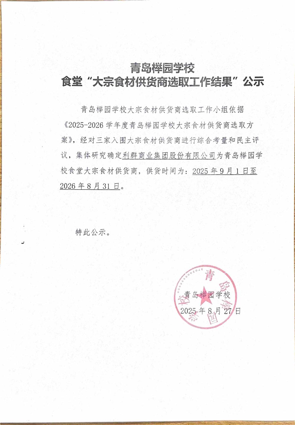 青岛样园学校 2025 秋季学期饭菜定价公示